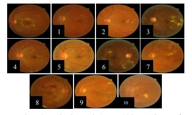 Colour fundus images play an important role in diagnosing and screening diabetic macular edema (DME). In rural areas, content-based image retrieval (CBIR) might compensate the lack of expert ophthalmologists. In this work, we present a fully automated CBIR system that retrieves fundus images according to their content (quantity and location) of exudates. First, the macula is divided into three concentric regions whose texture discontinuities are used to represent lesion content of the retina. The image-to-image distance measure gives higher weights to lesions closer to the fovea to reflect the