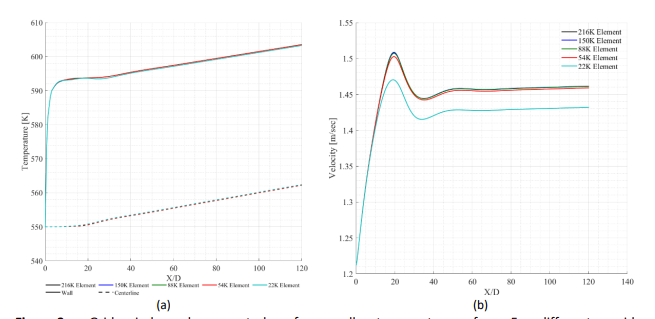 This study aims to investigate the Hitec molten salt's thermal-hydraulic behavior in a smooth round pipe under broad ranges of surface heat flux and Reynolds number (q = 104 - 105 W/m2, Re = 104 - 105). Mesh independent study was performed to ensure the robustness of the model to achieve accurate solutions. Presentation of temperature, pressure and thermophysical properties for multiple cases are presented and discussed. Temperature gradient decreases at high Reynolds number leading to small change in thermo-physical properties. While pressure seems not to be affected by the change in the