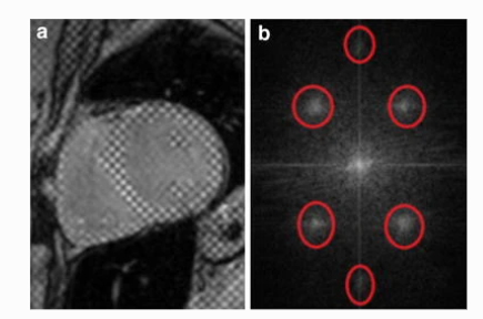 Purpose: Tagged and cine magnetic resonance imaging (tMRI and cMRI) techniques are used for evaluating regional and global heart function, respectively. Measuring global function parameters directly from tMRI is challenging due to the obstruction of the anatomical structure by the tagging pattern. The purpose of this study was to develop a method for processing the tMRI images to improve the myocardium-blood contrast in order to estimate global function parameters from the processed images. Materials and methods: The developed method consists of two stages: (1) removing the tagging pattern