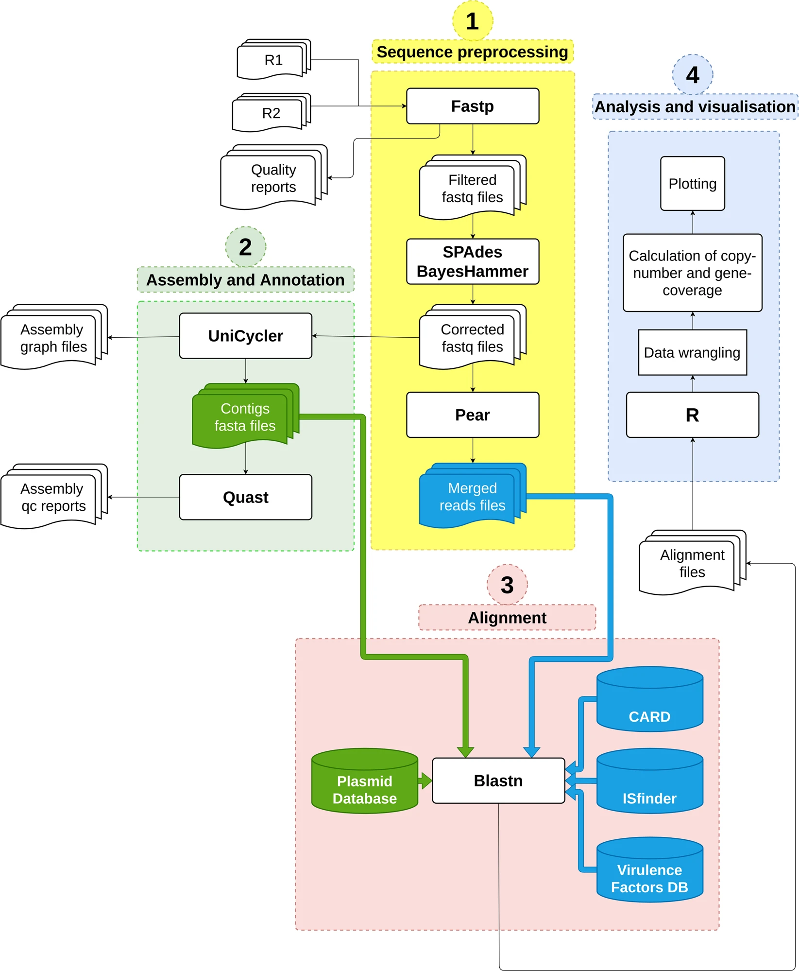 Infection with multiple drug resistant (MDR) Escherichia coli poses a life threat to immunocompromised pediatric cancer patients. Our aim is to genotypically characterize the plasmids harbored in MDR E. coli isolates recovered from bacteremic patients of Children’s Cancer Hospital in Egypt 57357 (CCHE 57357). In this study, 21 carbapenem-resistant E. coli (CRE) isolates were selected that exhibit Quinolones and Aminoglycosides resistance. Plasmid shot-gun sequencing was performed using Illumina next- generation sequencing platform. Isolates demonstrated resistant to all beta-lactams