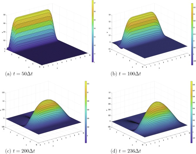 We present a numerical solution by finite differences to a linear, plane, initial-boundary-value problem of thermo-piezoelasticity in a quarter-space, within the dual-phase-lag model. Motion is excited by a one-period heat regime applied to one boundary of the medium. The relation between the two relaxation times is clarified in order to obtain wave-like solutions. An explicit, three-level numerical scheme is proposed to solve the problem under concrete initial and boundary conditions. The obtained results are discussed and three-dimensional plots of the unknown functions are presented. They