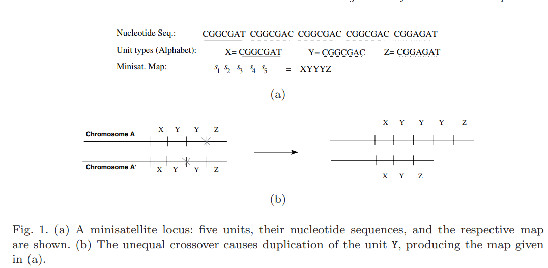 Alignment of minisatellite maps based on run-length encoding scheme