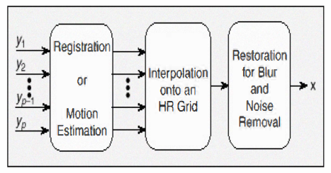 Reconstruction of High Resolution image from a set of blurred, warped, undersampled, and noisy measured images
