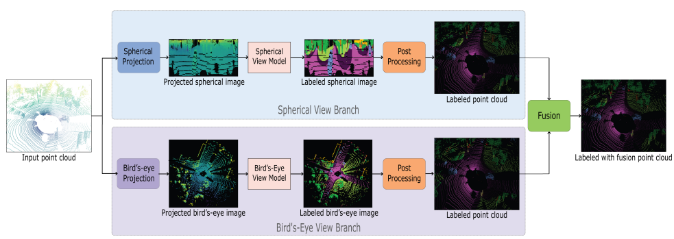 Multi projection fusion for real-time semantic segmentation of 3D LiDAR point clouds
