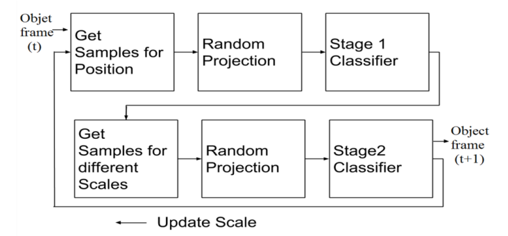 Real-time scale-adaptive compressive tracking using two classification stages