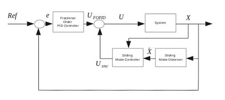 In this article a fractional order sliding mode PID controller and observer for the stabilization of continuous nonlinear switched systems is proposed. The design of the controller and observer is done following the separation principle, this means that the observer and controller are designed in a separate fashion, so a hybrid controller is implemented by designing the sliding mode controller part using an integral sliding mode surface along with a PIλDμ controller part which is the fractional order PID controller that is implemented to stabilizes the system. For the observer part, an