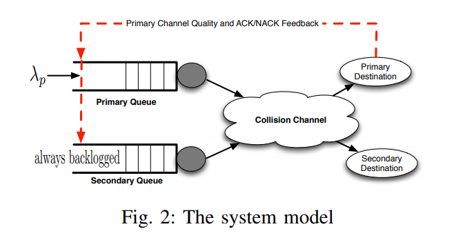 A single cognitive radio transmitter-receiver pair shares the spectrum with two primary users communicating with their respective receivers. Each primary user has a local traffic queue, whereas the cognitive user has three queues; one storing its own traffic while the other two are relaying queues used to store primary relayed packets admitted from the two primary users. A new cooperative cognitive medium access control protocol for the described network is proposed, where the cognitive user exploits the idle periods of the primary spectrum bands. Traffic arrival to each relaying queue is