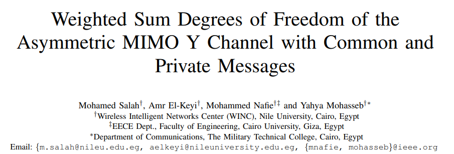 This paper investigates the weighted sum degrees of freedom (DoF) of the MIMO Y channel that consists of three users, where the j-Th user is equipped with Mj antennas, and a relay equipped with N antennas. In this network, each user conveys two private messages to the other two users in addition to a common message directed to both of them. As there is no direct link between the users, communication occurs through the relay. We define a weighted sum DoF metric that integrates all the network messages and weights the common message by a factor of α. Then, we study the weighted sum DoF