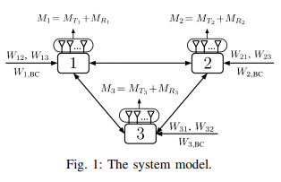 Asymmetric degrees of freedom of the full-duplex MIMO 3-way channel