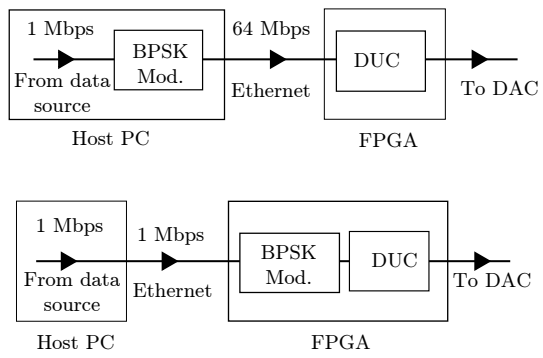 Maximizing USRP N210 SDR transfer rate by offloading modulation to the on-board FPGA