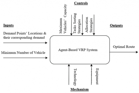 The Vehicle Routing Problem (VRP) is among the most studied optimization problems in the field of supply chain management. Typically, VRP requires dispatching a fleet of vehicles from a central depot to deliver demand to pre-determined spatially dispersed customers, with the objective of minimizing the total routing cost, and the constraint of not exceeding vehicles' capacities. Agent Based Modelling (ABM) assists industries in the use of technology to support their decision-making process. This paper proposes a model of an Agent Based Vehicle Routing Problem System. The system under study is